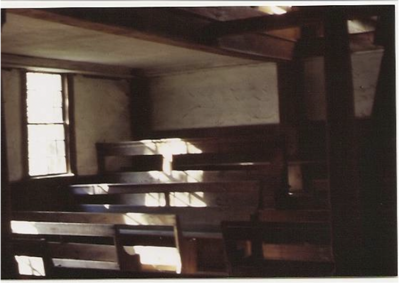Interior of the meeting house at the Oblong in Quaker Hill, New York